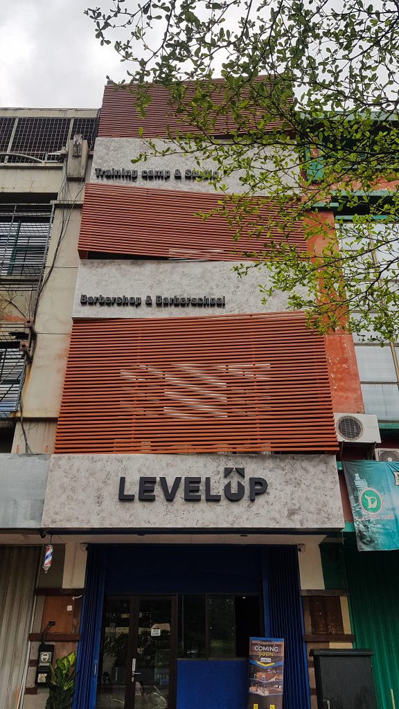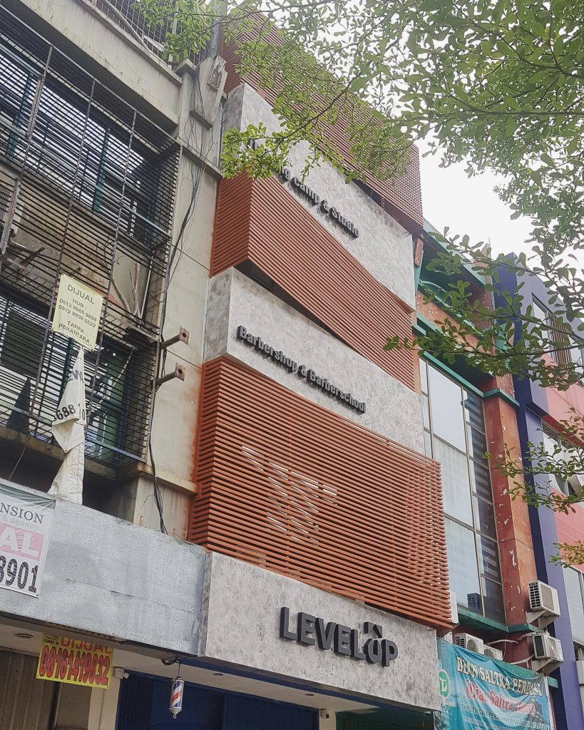 Level up merupakan bangunan komersial untuk berbagai macam usaha industry kreatif, tampak bangunan dengan konsep contemporer untuk mewakili semangat milenial. Kisi-kisi pada fasad selain untuk estetika namun untuk shading matahari terhadap jendela bangunan.